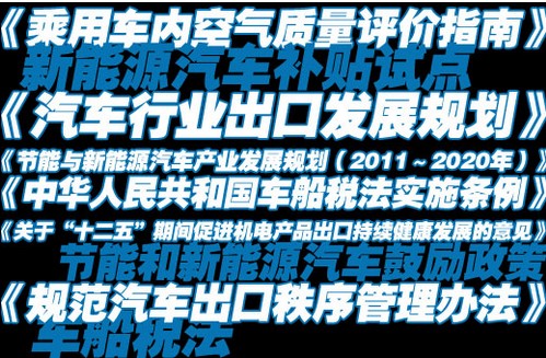 “一二五” 开局之年过后,2012年将有众多汽车行业法规条例开始正式施行,还有部分处于征求意见状态的行业标准及法规即将正式颁布。2012年,“车内空气”、“车船税法”、“新能源汽车补助”等将成为汽车行业政策热点,以下是2012年国家汽车相关政策的重点解读。