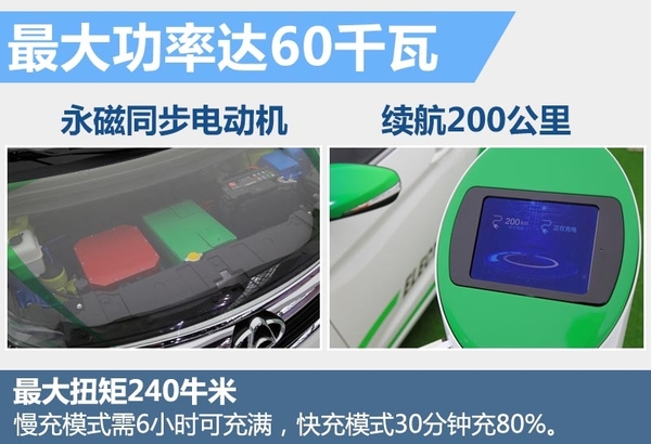 欧尚EV已于去年在重庆车展正式亮相,搭载的是永磁同步电动机,最大功率60千瓦,最大扭矩240牛米。欧尚EV配备石墨烯电池,放电性能为普通锂电池的3倍,同时充电速度也要比锂电池快很多,寿命则可以达到锂电池的2倍,其可以让新车拥有200公里的续航里程。欧尚EV在慢充模式下需要6个小时可将电池充满,快充模式30分钟可达到80%电量。