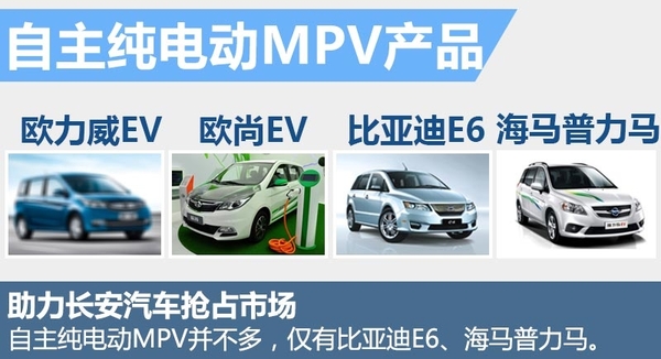 2015年中国新能源汽车的产量及销量分别达到34万辆和33万辆,年增长率分别达到334%和343%。目前国内市场中,自主品牌旗下的纯电动MPV车型并不多。比亚迪E6、海马汽车普力马是这一领域中为数不多的纯电动MPV产品。长安欧尚EV、欧力威EV两款车型的推出将助力长安汽车抢占这一全新细分市场。