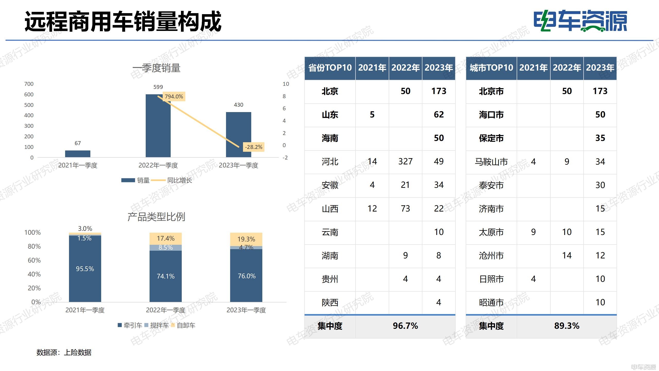 电车资源行业研究院作为专注于新能源商用车产业链的研究服务平台,提供专业的行业研究、市场调研、基础数据、产品研究、定制咨询等服务。针对新能源重卡市场,我们定期输出销量分析报告,现《2023年1季度新能源重卡销量分析报告》已出炉,特将完整报告分享阅读: