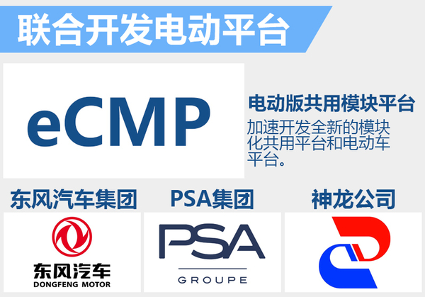 根据官方公布的消息,神龙公司将通过打造智能化制造体系,加速开发全新的模块化共用平台和电动车平台;并打造智能工厂、数字化车间,实现快速反应和柔性化生产,支撑大规模个性化定制。东风汽车集团、PSA集团和神龙公司三方将联合开发电动版共用模块化平台(eCMP),进一步推动东风集团在新能源领域的发展进程。eCMP项目合作的签署,可视为CMP项目成果的延伸与合作深化,集成了东风与PSA在电动车领域的丰富经验。