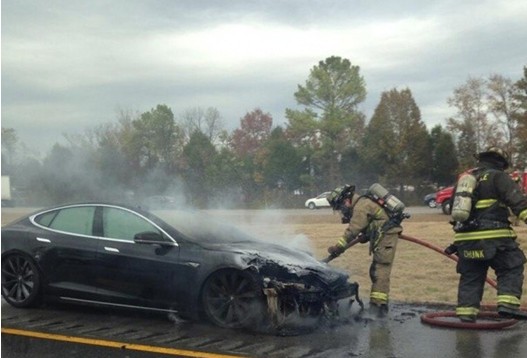 从某种意义上说使用锂离子18650电芯的TESL电动汽车的电池PACK在正常运行过程中,是比较安全的,保护也是比较完备的;但是在行驶过程中遇到碰撞这样的异常情况下,所有的电气防护均失效;着火是必然的。