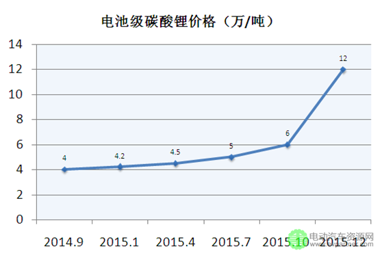 2015年,是锂电池市场行业爆发年,特别是10月份以来,政策的推动等相关影响,锂电关键原材料碳酸锂和六氟磷酸锂价格也相继上涨,进入2016年第一周,原材料碳酸锂价格继续保持增长态势,截至目前,行业均价已超过14.5万/吨。