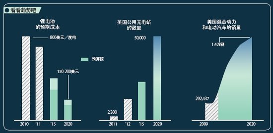 美国公用充电站的数量有望在今年增加4倍,达到1.2万个,电动汽车电池的生产成本也在急剧下降。电动汽车和混合动力汽车的销售额应该会大幅上涨,尤其是在城市地区。