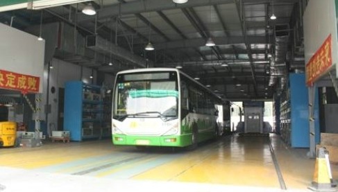 下午2点左右到达充电站后,记者发现,整个充电站内停放着近20辆纯电动车,有2辆正在换电站内(只有一条换电通道,两个工位)停放着,站外还有7辆等待补电的电车在排队;在换电站的一侧,有三个直充电桩,有2辆纯电动车正在充电,旁边还候着3辆;换电站的后面是第三巴士的保养场,里面还稀稀拉拉停放着4、5辆纯电动车。也就是说,2/3数量的纯电动公交车都停在站内,而没有正常运营。
