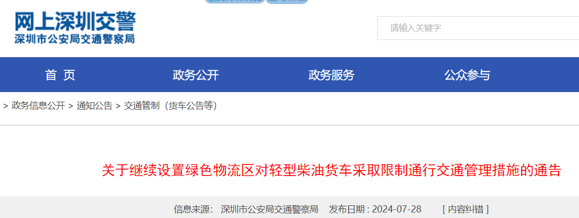 11月22日,深圳市公安局交通警察局发布关于继续在我市部分区域及道路对货车实施限制通行交通管理措施的通告。