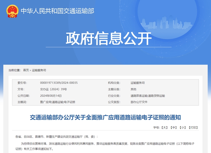 2024-11-14 绿色运输推进电子证照应用是提升政务服务水平、优化营商环境、降低道路运输行业制度性交易成本、推动交通物流降本提质增效的重要举措。