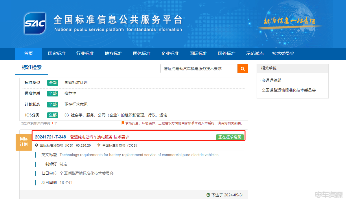 2024-08-12 新能源汽车 热点国标《营运纯电动汽车换电服务技术要求》征求意见
