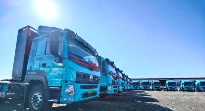 2023-05-22 商用车5月10日,中国重汽成都商用车“携手‘卫’蓝·大美青白江——成都豪沃100辆纯电渣土车订单交付暨战略合作签约仪式 ”在厂区内隆重举行。