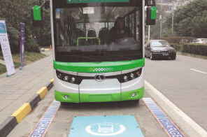 2015-02-11 2015年1月 新能源汽车目前,成都首条无线充电社区公交车1058路已经正式投入试运行。其终点站有块蓝色充电标志,无线充电板设备就埋在下面,巴士只要停靠在上面即可自动充电。