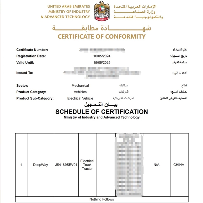 2024-11-01 DeepWay深... 宁德时代DeepWay深向斩获全球首张电动重卡沙特SASO认证证书及阿联酋MOIAT认证证书——电车资源